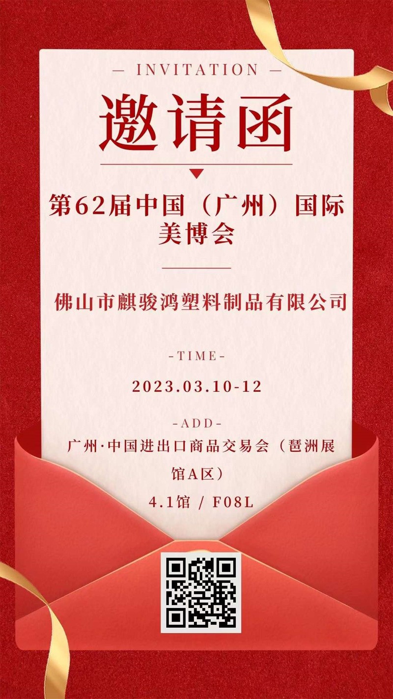 佛山市麒駿鴻塑料制品有限公司將參加第62屆中國(廣州)國際美博會(huì)。時(shí)間:2023年3月10日至12日地點(diǎn):廣州.中國進(jìn)出口商品交易會(huì)(琶洲展館A區(qū)),4.1館/F08L